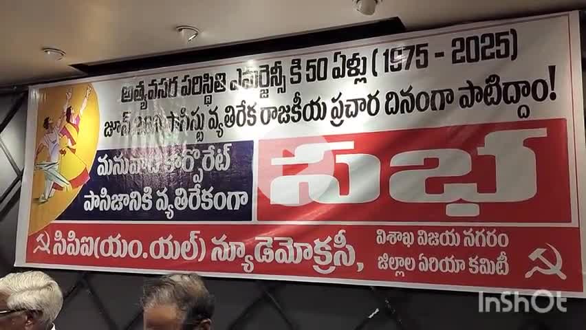 1975లో అప్పటి దేశ ప్రధాని ఇందిరాగాంధీ ఎమర్జెన్సీ విధించి నేటికి 50 ఏళ్లు పూర్తయిన సందర్భంగా సిపిఐ ఎంఎల్ న్యూ డెమోక్రసీ ఏపీ రాష్ట్ర కమిటీ పిలుపుమేరకు విశాఖలో ఫాసిస్టు వ్యతిరేక రాజకీయ ప్రచార దినాన్ని నిర్వహించారు. గురువారం ఉదయం 11 గంటలకు ద్వారక నగర్ పౌర గ్రంథాలయంలో నిర్వహించిన ఈ కార్యక్రమానికి సిపిఐ ఎంఎల్ న్యూ డెమోక్రసీ విశాఖ విజయనగరం జిల్లాల కమిటీ కార్యదర్శి వెంకటేశ్వర్లు ఏపీ రాష్ట్ర అధికార ప్రతినిధి పి ప్రసాద్ మానవ హక్కుల వేదిక ఏపీ తెలంగాణ రాష్ట్ర సమన్వయకర్త కృష్ణ భారత నాస్తిక సమాజం రాష్ట్ర అధ్యక్షులు శ్రీరామ్మూర్తి రాజకీయ ఖైదీల విడుదల కమిటీ ప్రతినిధి పద్మ తదితరులు పాల్గొన్