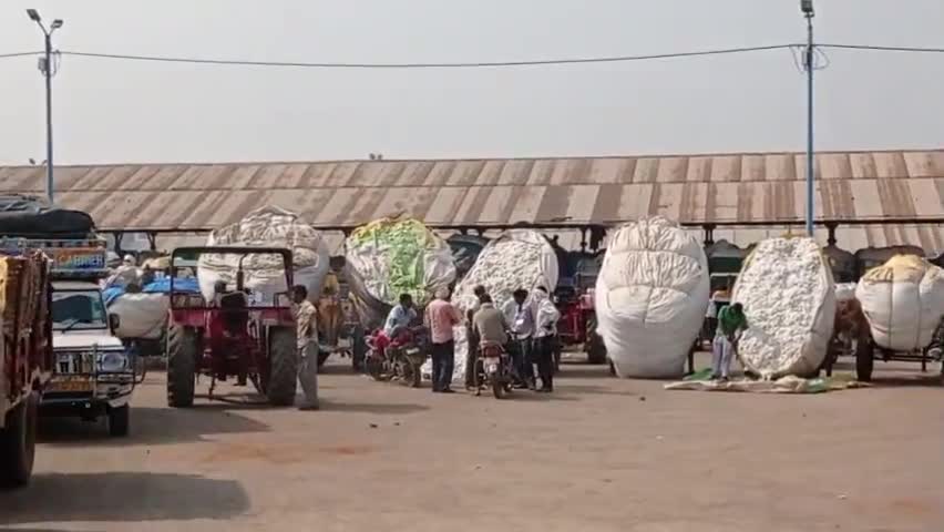 खरगौन: खरगोन कपास मंडी में शुक्रवार को कपास के 690 वाहन और 235 बैलगाड़ी आई नीलामी के लिए । #किसान #कपास