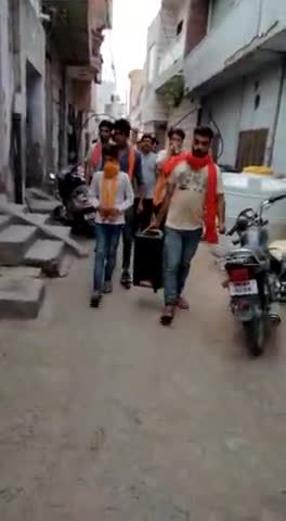 भिवानी शहर में कोविड-19 वैक्सीन के लिए लोगों को जागरूक करते हुए बजरंग दल के कार्यकर्ता!