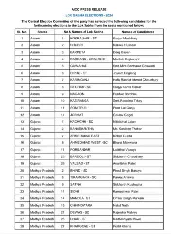 #लोकसभा 2024 के लिए #कांग्रेसपार्टी के उम्मीदवारों की दुसरी लिस्ट। सभी #उम्मीदवारों को बधाई। #CongressParty #congresscandidatelist #mohdahtishamahsan