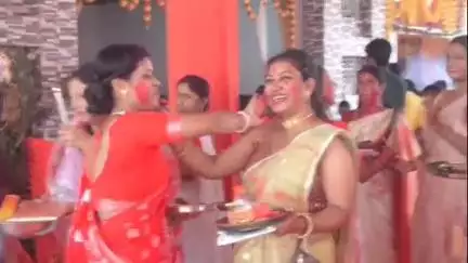 ডিফু: বিজয়া দশমী উপলক্ষে বকলীয়াঘাটত ভক্ত সকলৰ পৰাম্পৰাগত সেন্দুৰ খেল