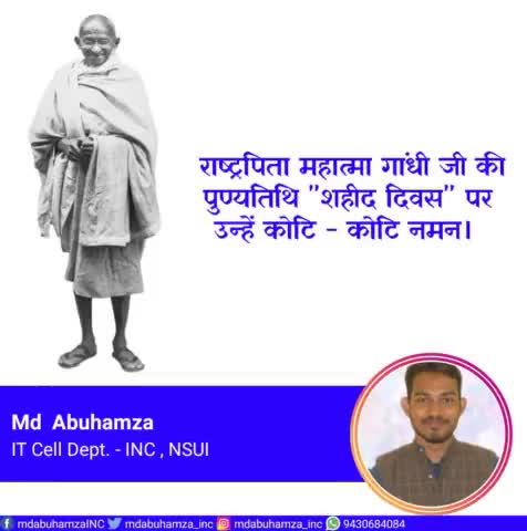 राष्ट्रपिता महात्मा गांधी जी की पुण्यतिथि "शहीद दिवस" पर उन्हें कोटि - कोटि नमन। #GandhiPunyatithi #Gandhi