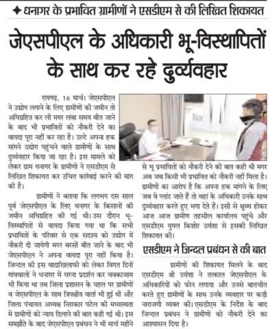 लगातार लगा रहे चक्कर जिन्दल और एस डी एम के दफ्तर पर ग्रामीण पिछले 3 सालों से फिर भी नही मिल पाई नॉकरी