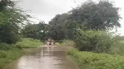 ಗುಳೇದಗುಡ್ಡ: ನಿರಂತರವಾಗಿ ಸುರಿದ ಮಳೆಯ ಪರಿಣಾಮವಾಗಿ ತಾಲೂಕಿನ ನಾಗರಾಳ- ಪಟ್ಟದಕಲ್ ರಸ್ತೆ ಜಲಾವೃತ, ಸಂಚಾರಕ್ಕೆ ಜನರ ಪರದಾಟ
