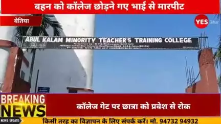 बेतिया से बड़ी खबर आ रही है। जहा बहन को कॉलेज छोड़ने गए भाई की बेरहमी से पिटाई, घंटों बंधक बनाए जाने का आरोप।आपको बता दे बेतिया जिले के साठी प्रखंड अंतर्गत कटहरी गांव स्थित अबूल कलाम माइनॉरिटी टीचर ट्रेनिंग कॉलेज में गुरुवार को बड़ा बवाल खड़ा हो गया। आरोप है कि कॉलेज गेट पर छात्रा को प्रवेश से रोके जाने के बाद हुई मारपीट।
