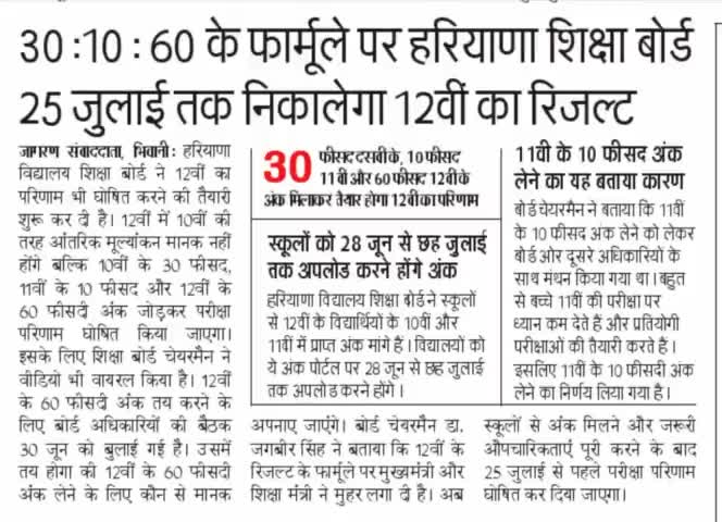 25 जुलाई तक 12वी का रिजल्ट हो सकता है जारी।