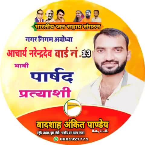 अयोध्या:- आप सभी के स्नेह, सहयोग, समर्थन और आशीर्वाद का आकांक्षी आपका अपना सेवक भावी पार्षद पद प्रत्याशी अंकित पाण्डेय