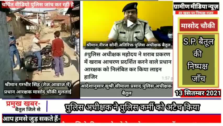मुलताई थाना क्षेत्र की मासोद चौकी में एक वीडियो ने पुलिस कर्मी को निलंबित करवा दिया। मामला है, अवैध शराब से सम्बंधित