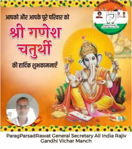 आप सभी देशवासियों मित्रों को परिवार सहित गणेश चतुर्थी कि अनंत् हार्दिक शुभकामनाएं। पराग प्रसाद रावत राष्ट्रीय महासचिव अखिल भारतीय राजीव गांधी विचार मंच