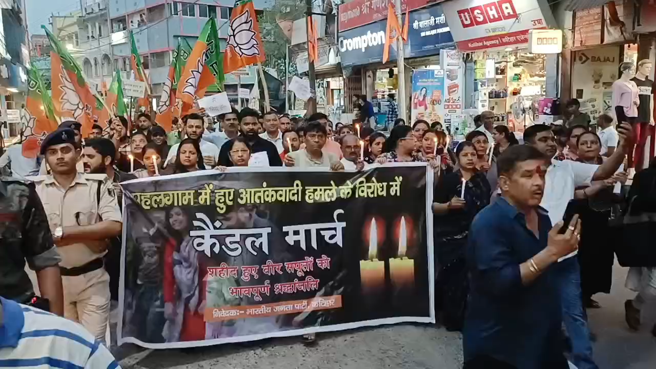 कटिहार में भारतीय जनता पार्टी के नेतृत्व में पानी टंकी चौक से शहीद चौक तक कैंडल मार्च निकाला गया, जिसमें पहलगाम आतंकी हमले में शहीद हुए 26 निर्दोष पर्यटकों को श्रद्धांजलि दी गई। 🕯 यह कैंडल मार्च आतंकवाद, नफ़रत और हिंसा के खिलाफ