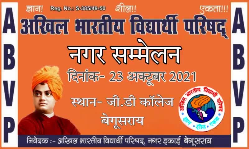 ABVP नगर सम्मेलन आप लोग सादर आमंत्रित हैं। स्थान -दिनकर सभागार ,जीडी कॉलेज बेगूसराय