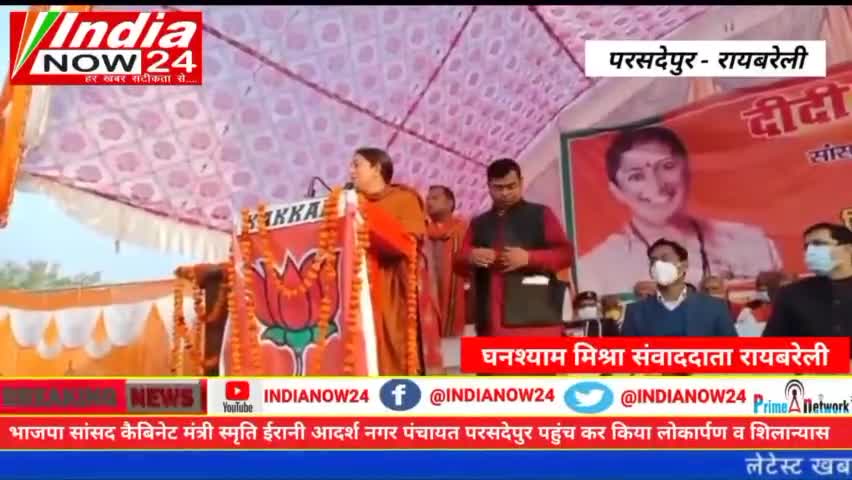भाजपा सांसद कैबिनेट मंत्री स्मृति ईरानी आदर्श नगर पंचायत परसदेपुर पहुंच कर किया लोकार्पण व शिलान्यास