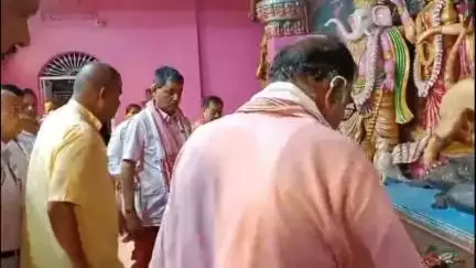 পশ্চিম নলবাৰী: নলবাৰীৰ বিহামপুৰৰ দূৰ্গা পূজাস্থলীত উপস্থিত মন্ত্ৰী চন্দ্ৰমোহন পাটোৱাৰী