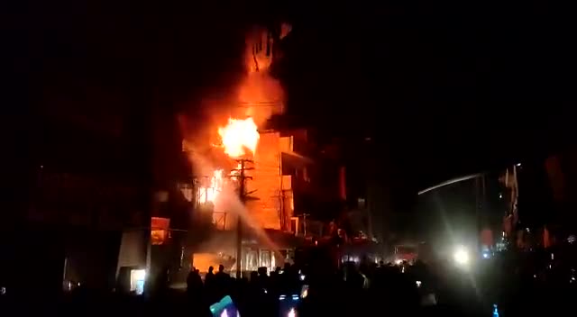 स्टेशन रोड़ बाड़मेर में मंगलवार रात शोरूम में लगी आग तीन बिल्डिंग जलकर खाक