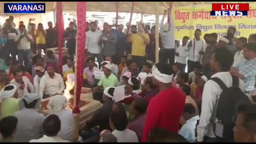 उत्तर प्रदेश के सभी जिलों में विद्युत कर्मचारी धरने पर हैं इसी क्रम में वाराणसी के एमडी कार्यालय पर समझौता यज्ञ चल रहा