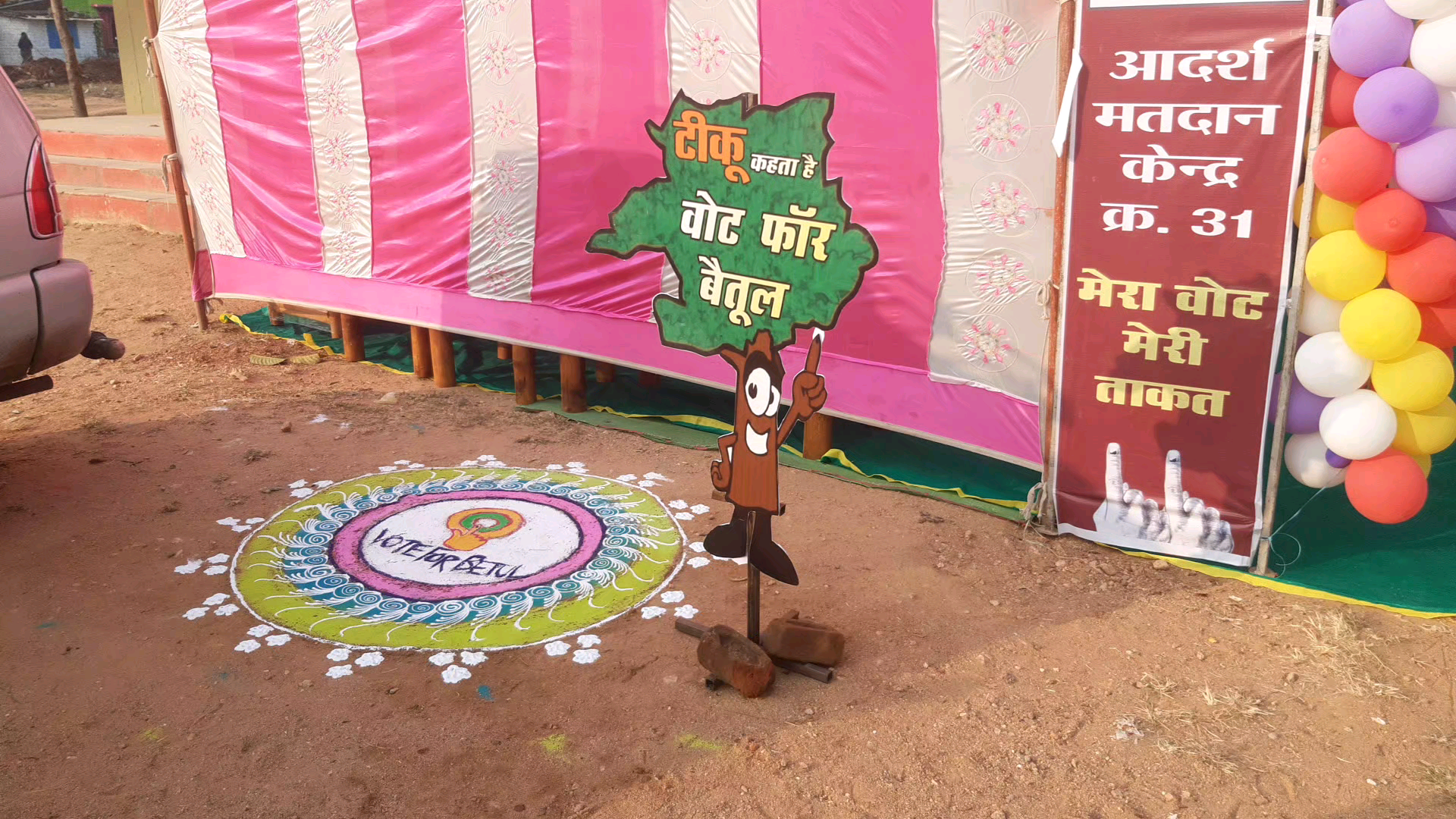 ग्राम मां भारती नगर जामठी मतदान केंद्र क्रमांक 31 को बनाया आदर्श मतदान केंद्र