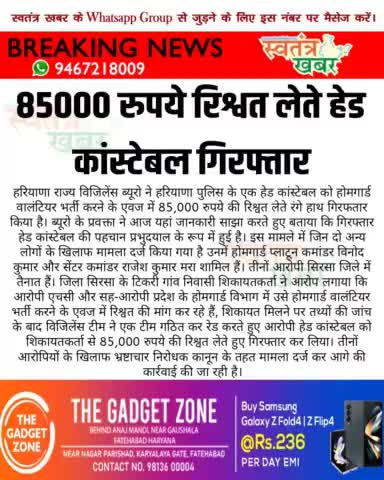 85000 रुपये रिश्वत लेते हेड कांस्टेबल गिरफ्तार.. #swatantarkhabar #स्वतंत्रखबर #vijlenceraid