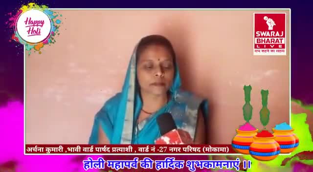 मोकामा सहित सभी देशवासियों को होली की हार्दिक शुभकामनाएं- अर्चना कुमारी प्रत्याशी वार्ड नम्बर 27 मोकामा नगरपरिषद
