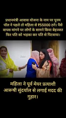 प्रधानमंत्री आवास योजना के नाम पर पूनम पॉल ने पहले तो महिला से ₹55000 ठगे। पैसे वापस मांगने पर लोगों के सामने किया