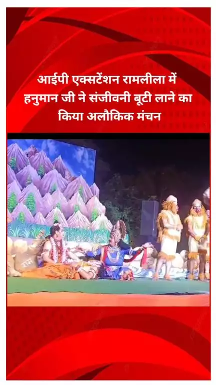 आईपी एक्सटेंशन रामलीला में हनुमान जी ने संजीवनी बूटी लाने का किया अलौकिक मंचन. इस प्रश्न को देखने के लिए हजारों की संख्या में लोगों की भीड़ मौजूद थी