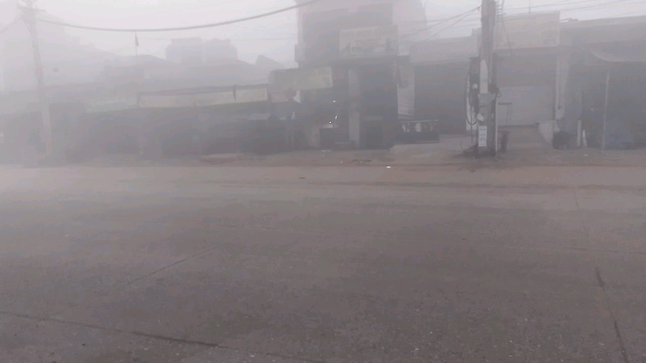 घने कोहरे के साथ बढ़ा ठंड का प्रकोप गौच्छी सोहना रोड सुबह 7:30 बजे का दृश्य