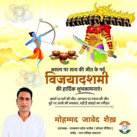 समस्त देशवासियों को अधर्म पर धर्म असत्य पर सत्य व बुराई पर अच्छाई की विजय के महापर्व विजयादशमी की हार्दिक बधाई एंव शुभकामनाएं!