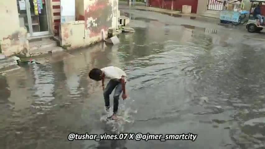 अजमेर के मशहूर इनफ्लूंसर तुषार द्वारा, आज अजमेर के कई इलाके जहा पानी भरा था वहां जाकर अपने आप को इस पानी में भिगाया
