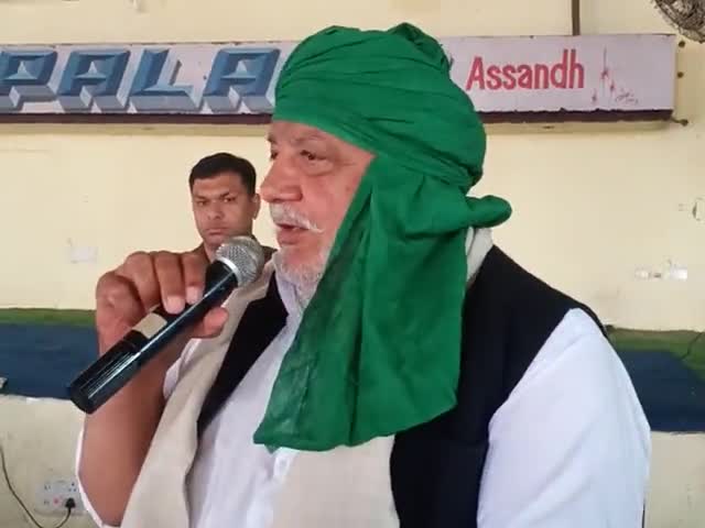 असंध के सिटी पलेस में किसान सद्भावना सम्मेलन में संबोधित करते विधायक शमशेर सिंह गोगी