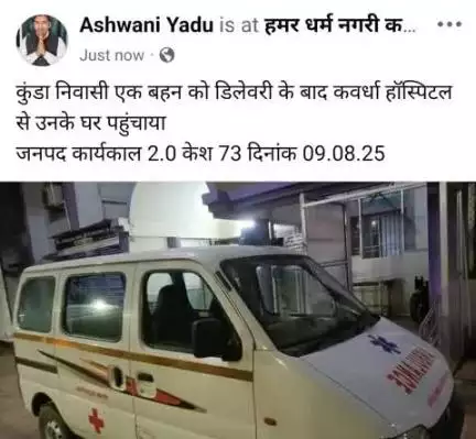 कुंडा निवासी एक बहन को डिलेवरी के बाद कवर्धा हॉस्पिटल से उनके घर पहुंचाया जनपद कार्यकाल 2.0 केश 73 दिनांक 09.08.25