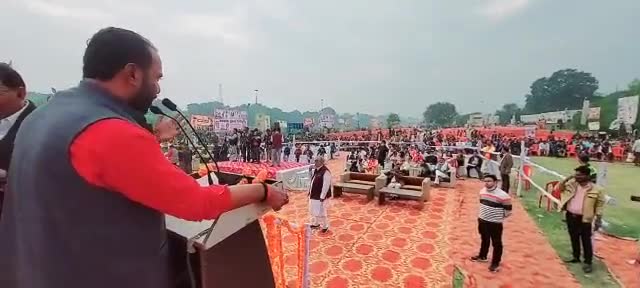 लखनऊ के झूलेलाल पार्क में कायस्थ हुंकार रैली को संबोधित करते मनमोहन श्रीवास्तव काजू