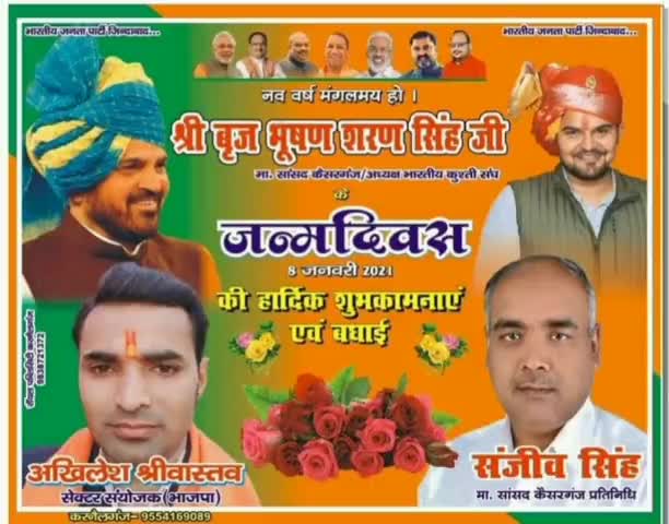 करनैलगंज: ग्राम पंचायत हीरापुर कमियार निवासी भाजपा नेता अखिलेश श्रीवास्तव ने कैसरगंज सांसद को दी जन्मदिन की शुभकामनाएं
