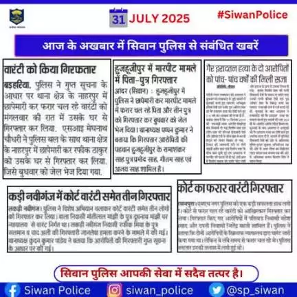 आज के अखबार में सिवान पुलिस से संबंधित महत्वपूर्ण उपलब्धियां। . #digsaran #HainTaiyaarHum #BiharPolice