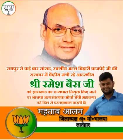 रायपुर से कई बार सांसद,अटल जी की सरकार में केंद्रीय मंत्री रहे आदरणीय श्री रमेश बैस जी को झारखण्ड का राज्यपाल नियुक्त कि