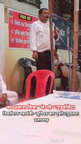जूनियर बार एशोसिएशन के निवर्तमान महामंत्री जय प्रकाश मिश्र जे.पी. भइया कचेहरी में आंदोलन के दौरान उद्बोधन देते हुये।