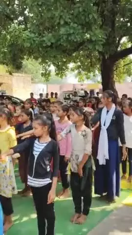 बच्चों को स्वच्छता अभियान में शपथ करवाते हुए जिला प्रशासन अशोकनगर