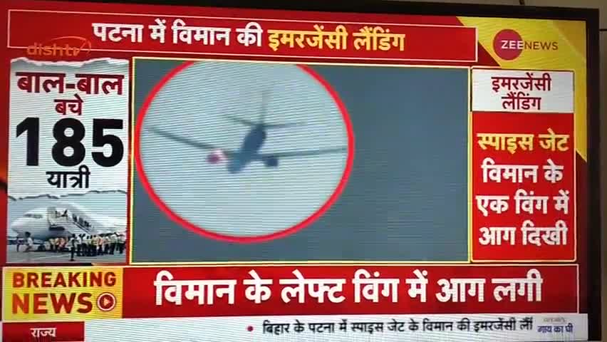 185 यात्रियों को लेकर पटना से दिल्ली जा रही स्पाइसजेट के लेफ्ट इंजन में लगी आग।जिसके बाद की सुरक्षित ढंग से लैंडिंग।
