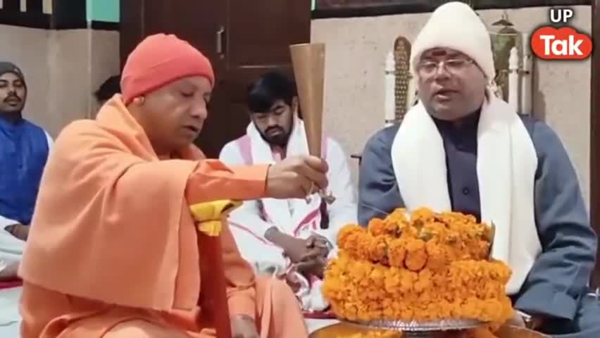 माननीय मुख्यमंत्री उत्तर प्रदेश परम पूज्य महाराज जी जन कल्याण के लिए रुद्राभिषेक करते हुए। हर हर महादेव हर हर महादेव
