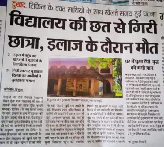 विद्यालय की छत से गिरी छात्रा,इलाज के दौरान मौत ।