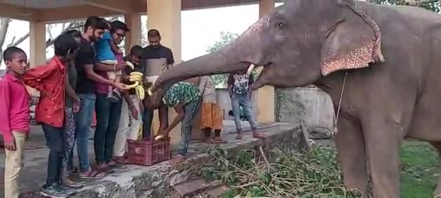 विश्व हाथी दिवस पर महाराज भरतरी धाम से रावण देवरा की ओर जाते हुए संत समाज हाथी का केकड़ी में अभिनंदन किया गया