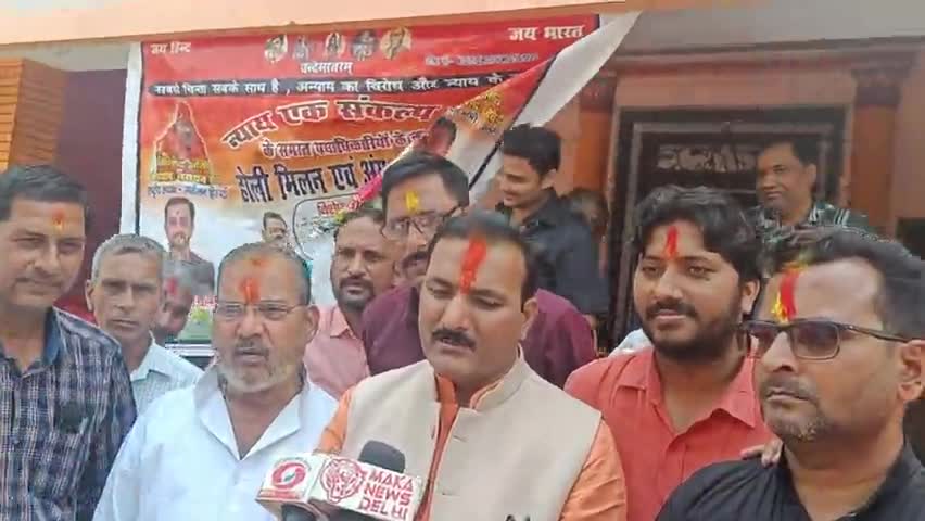 न्याय एक संकल्प अध्यक्ष राम कृष्ण पाण्डेय की तारीफ करते पूर्व बेसिक शिक्षा मंत्री सतीश चन्द्र द्विवेदी ।