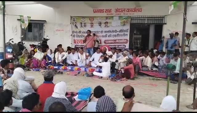मेसकौर: केन्द्र सरकार की जन विरोधी नीति के खिलाफ धरना प्रदर्शन में जनता से रुबरु होते मेसकौर राजद अध्यक्ष विश्वजीत घोष