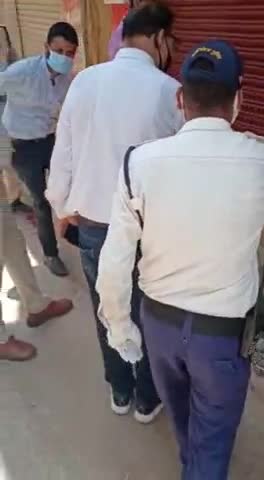 Niwari:- निवाड़ी में पुलिस प्रशासन द्वारा लगाया गया छापा जिसमें बच्चे समेत नौ लोगों को निकाला गया दुकान के बाहर।