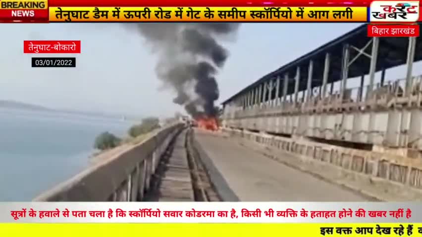 तेनुघाट डैम गेट के समीप स्कॉर्पियो में लगी भीषण आग देखें पूरी रिपोर्ट