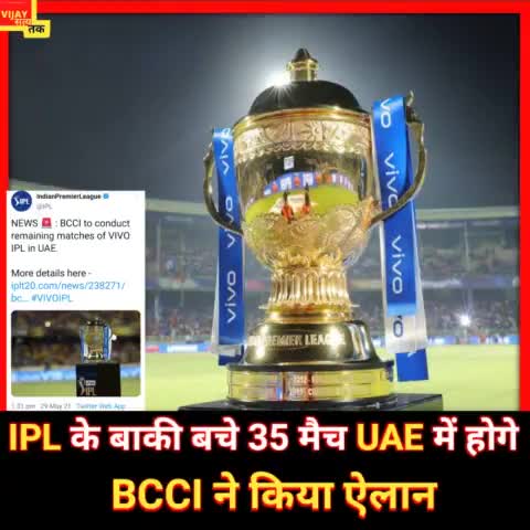 बीसीसीआई ने की घोषणा आईपीएल के बाकी बचे 35 मैच होंगे यूएई में। #ipl2021news