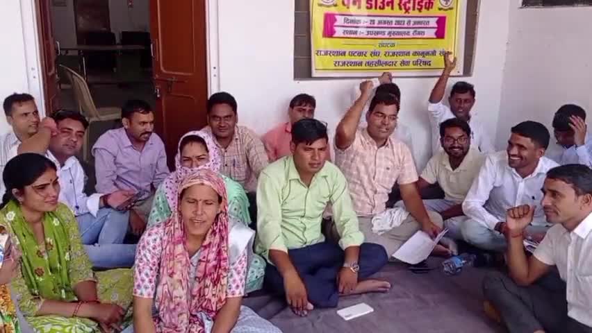#रीगस।राजस्थान राजस्व सेवा परिषद कर्मचारीयो की पेन डाउन हड़ताल ,7 सूत्रीय मांगों को लेकर उपखंड़ कार्यालय पर दे रहे धरना