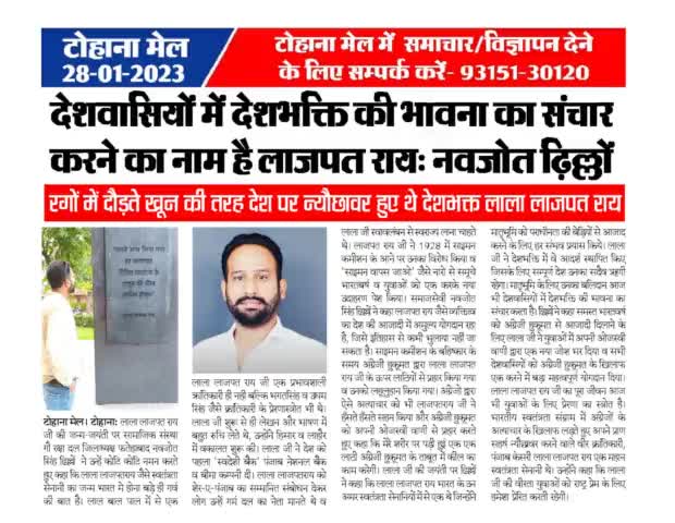 अपनी वाणी से युवाओं में जोश भरने का नाम है,लाला लाजपत राय: नवजोत सिंह ढिल्लों