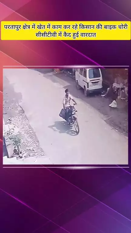 मेरठ के परतापुर थाना क्षेत्र स्थित बहादरपुर गांव में खेत पर काम कर रहे एक किसान की बाइक चोरी हो गई। किसान ने चोर का पीछा करने का प्रयास किया, लेकिन वह पकड़ में नहीं आया। यह पूरी घटना गांव की एक दुकान पर लगे सीसीटीवी कैमरे में कैद हो गई, जिसमें एक युवक चोरी की गई बाइक लेकर फरार होता दिख रहा है।