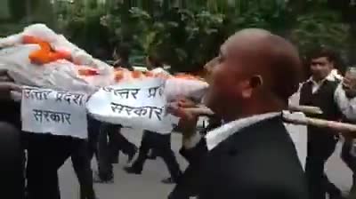 प्रयागराज में हाई कोर्ट के #अधिवक्ताओं द्वारा #उत्तर_प्रदेश_सरकार की निकली गयी #शव_यात्रा लगे योगी मुर्दाबाद के नारे