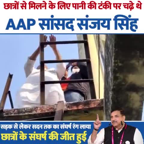 उत्तर प्रदेश में 69000 शिक्षक भर्ती मे हुए आरक्षण को लेकर धरना दे रहे छात्रों से सबसे पहले मिलने पहुंचे थे AAP सांसद @SanjayAzadSln जी। उन्होंने पानी की टंकी पर चढ़कर छात्रों को संबोधित करते हुए विश्वास दिलाया था कि उनकी इस लड़ाई को AAP सद