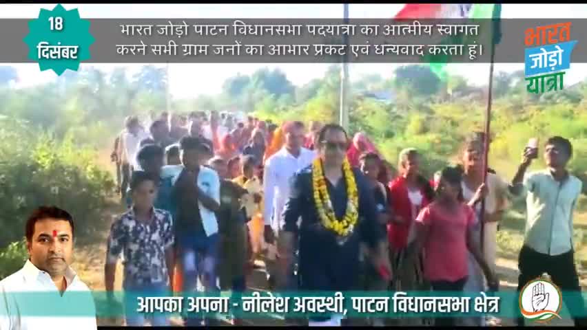कल दिनांक 18/12/2022 भारत जोड़ो विधानसभा पदयात्रा पाटन कटंगी मझौली का ग्राम - सरखंडी, कुमगवा,बम्होरी,अमरपुर,पिपरिया, झामर, पहुंची जहां हनुमान चालीसा पाठ एवं गांधी चौपाल हुई।